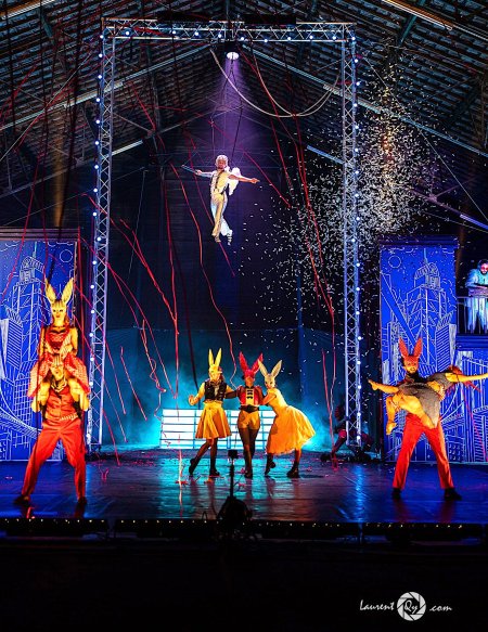 Acts: Puppet dance, Chinese Pole, Aerial Rope and Strops, Vertical Dance,  Double Cyr Wheel and Luminous Cyr Wheel, Burlesque Tumblers, Balance / Aerial Straps, Swinging Trapeze , Fire Juggling.