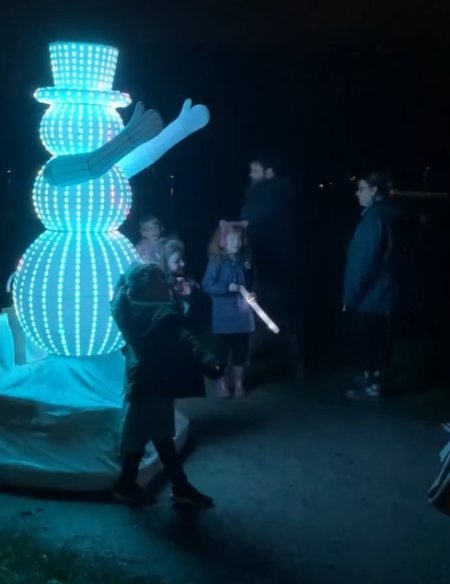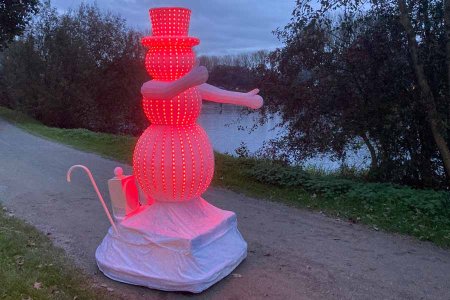 The snowman is 1.3 meters long, 1.05 meters wide and 2.25 meters high.