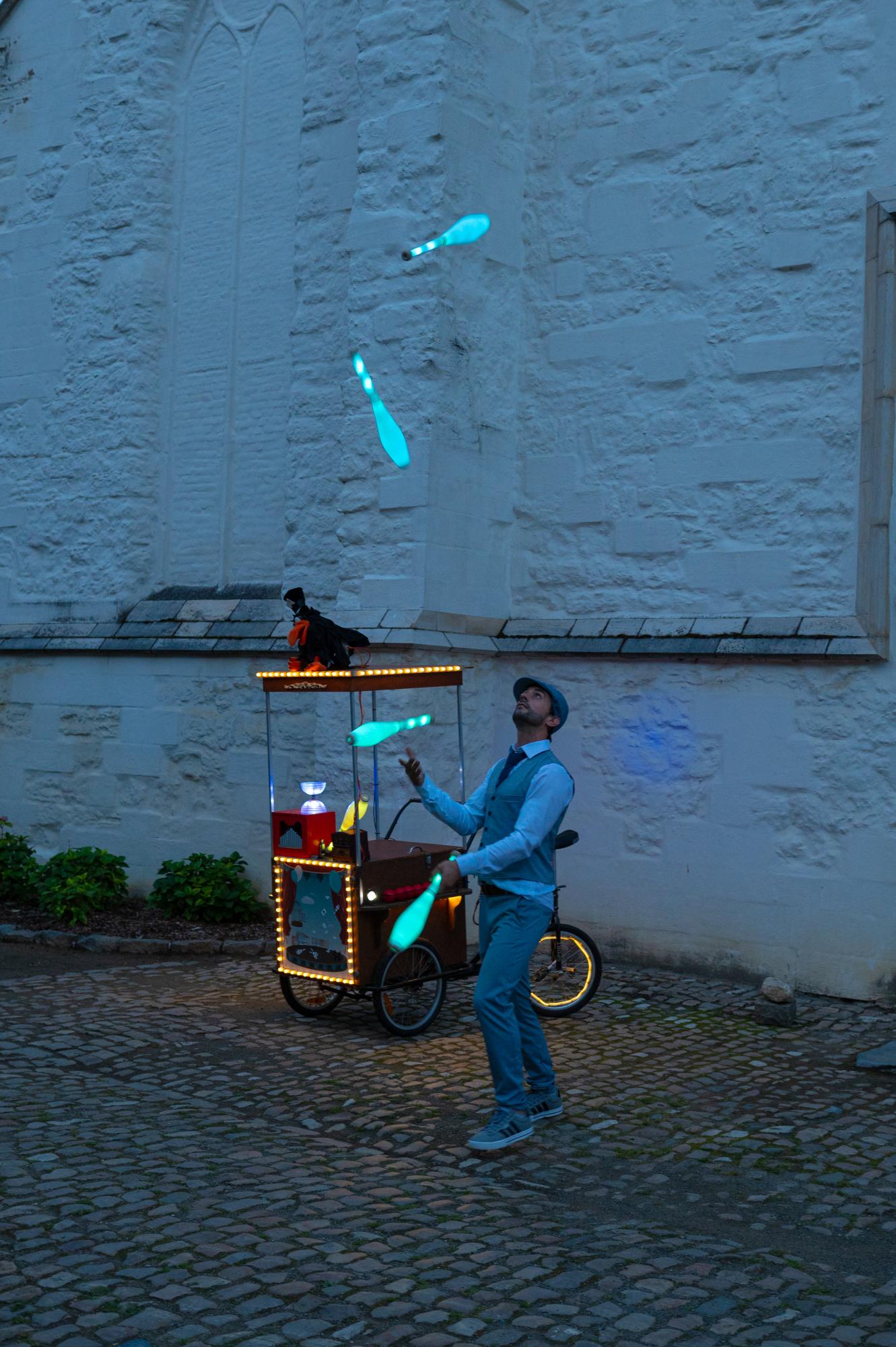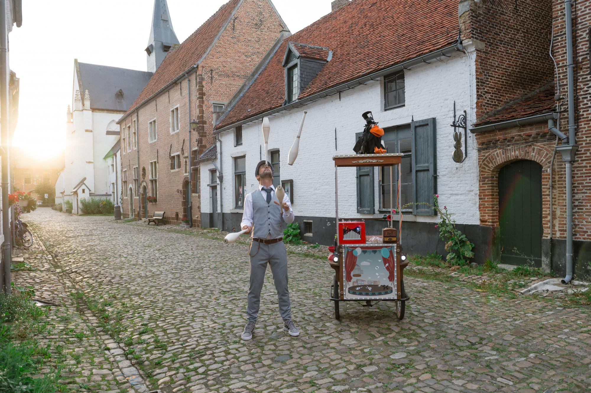 - Assez haut pour mettre des échasses. Si ce n'est pas possible, alors une table et des chaises à l'extérieur, à l'abri des regards du public, afin de pouvoir mettre les échasses