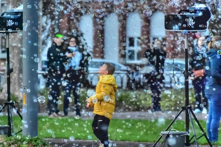 Een sprookjesachtige atmosfeer wordt gecreërd waarbij de locatie wordt omhuld door… maar liefst 90.000 ZEEPBELLEN per MINUUT! Zoveel BUBBLES is ongezien!!!