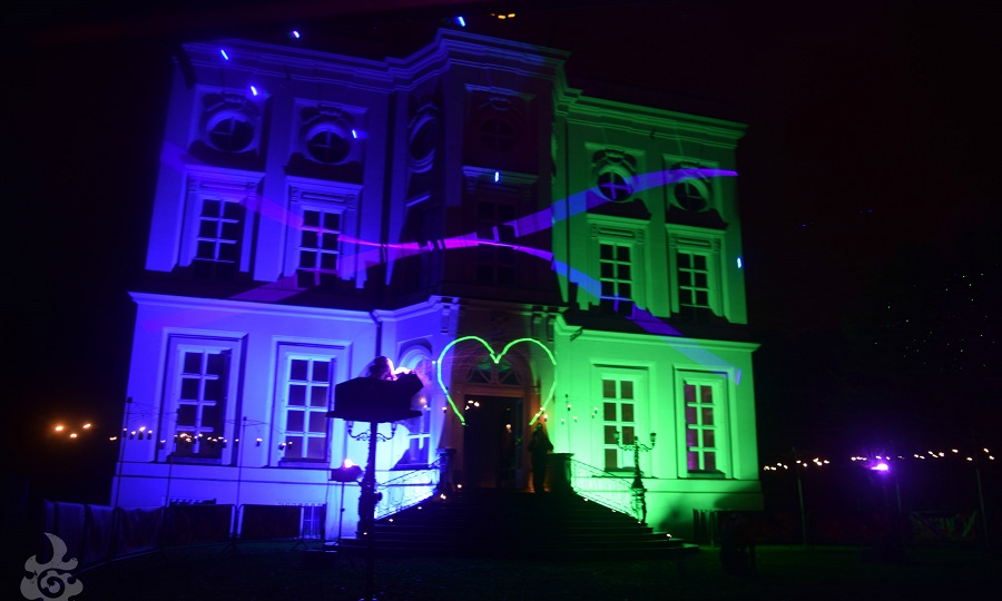 Deze sfeer wordt extra versterkt door het voorzien van prachtige bijhorende magische muziek en uitlichting met zware, kleurrijke spots en zware laser (waarmee prachtige projecties op gebouwen & omgeving kunnen worden getoverd) !