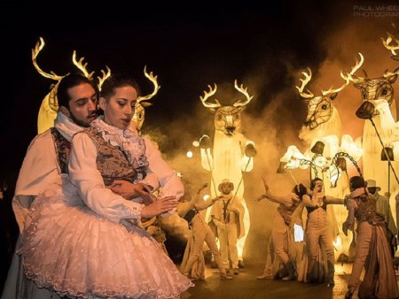 Deze multidisciplinaire show combineert circus, dans, manipulatie van grote lichtpoppen, pyrotechniek en gebruikt de projectie van poëtische beelden als een virtuele omgeving.